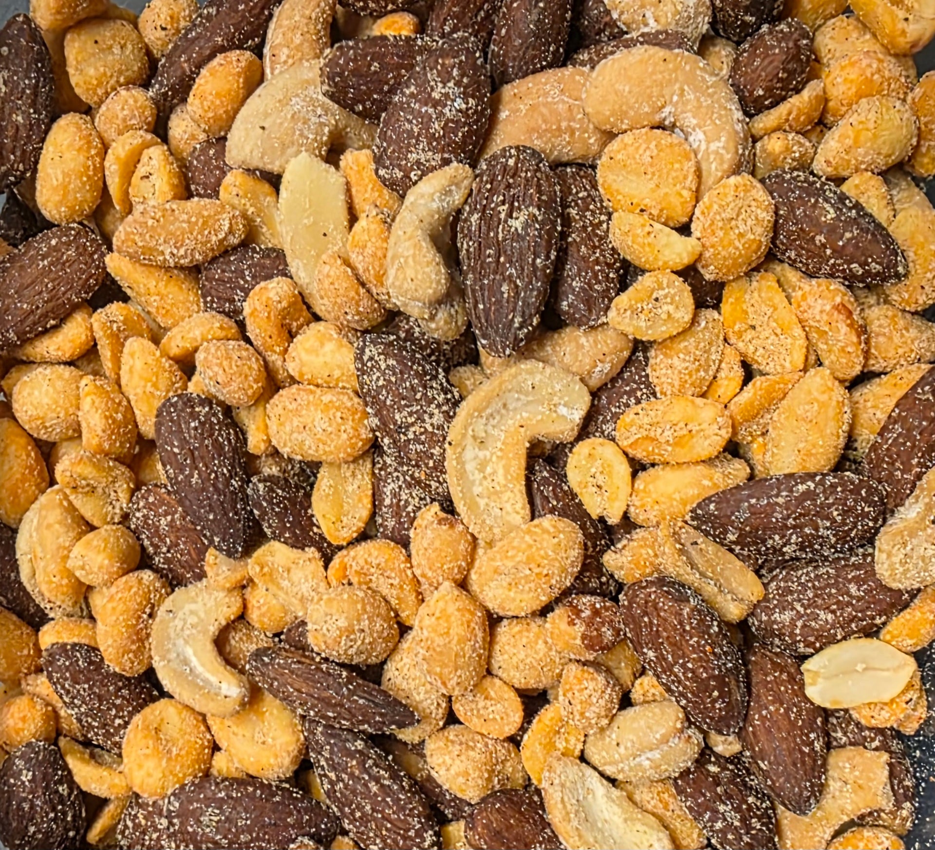 Savoureux mélange de noix. Amande fumée, arachides BBQ et cajous sel et vinaigre.