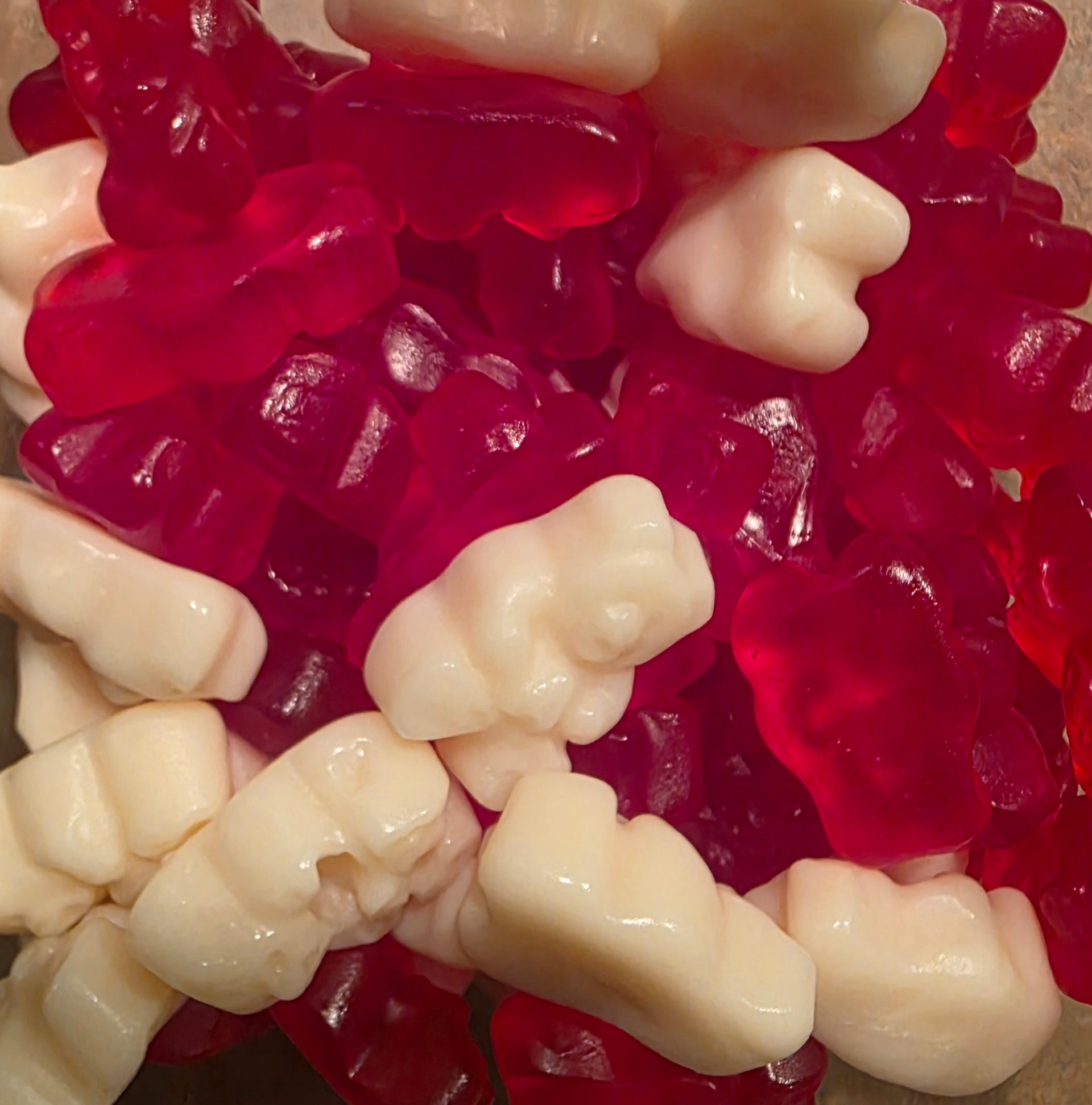 Délicieux oursons en gelée rouge et blanc
