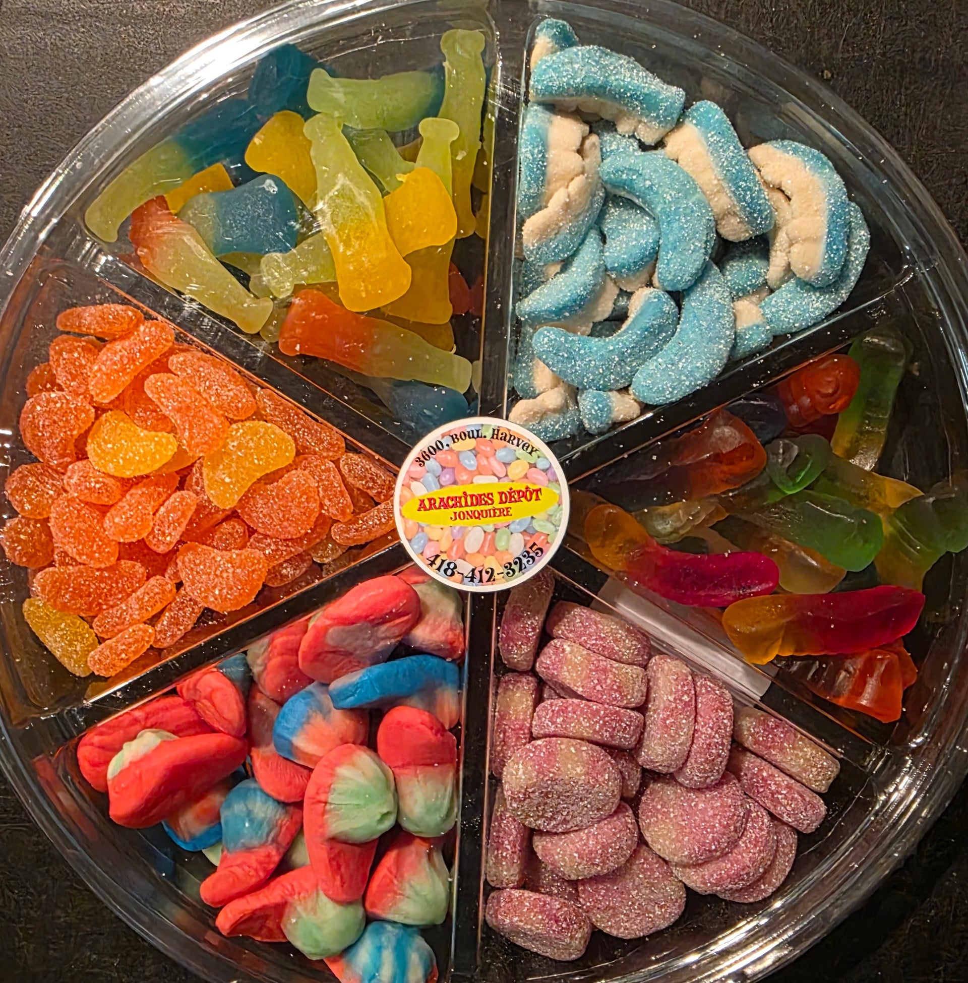 Délicieux carrousel de bonbons 6 sortes différentes, les bonbons varient d'un carrousel à l'autre.