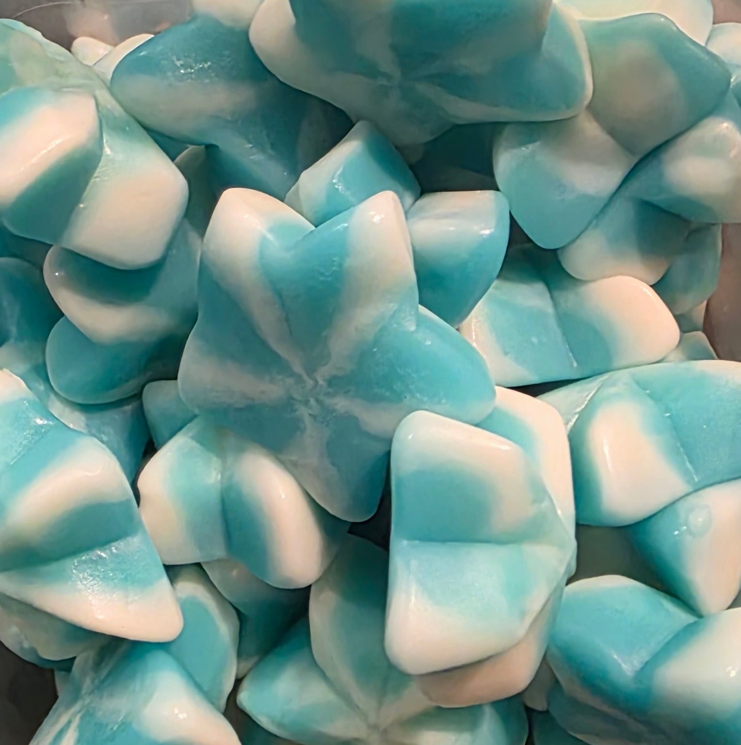 Délicieux jujubes en forme d'étoile, bleu et blanc.