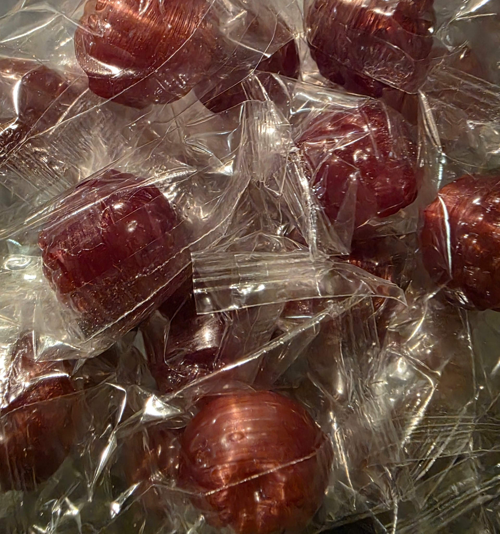 Délicieux bonbon dur emballés, framboises farcies.