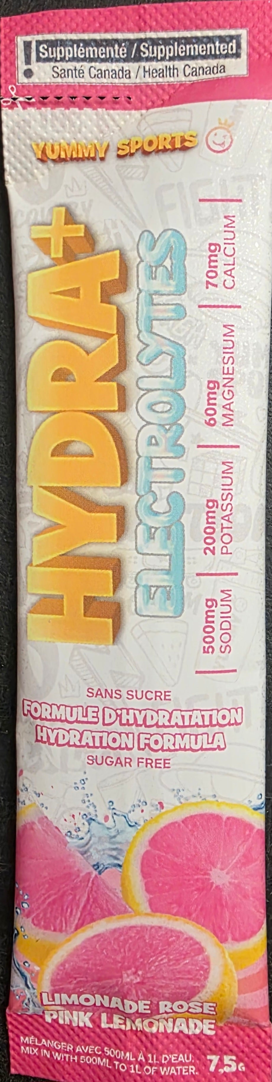 Sachet d'électrolytes Hydra+ à saveur de limonade rose, sans sucre