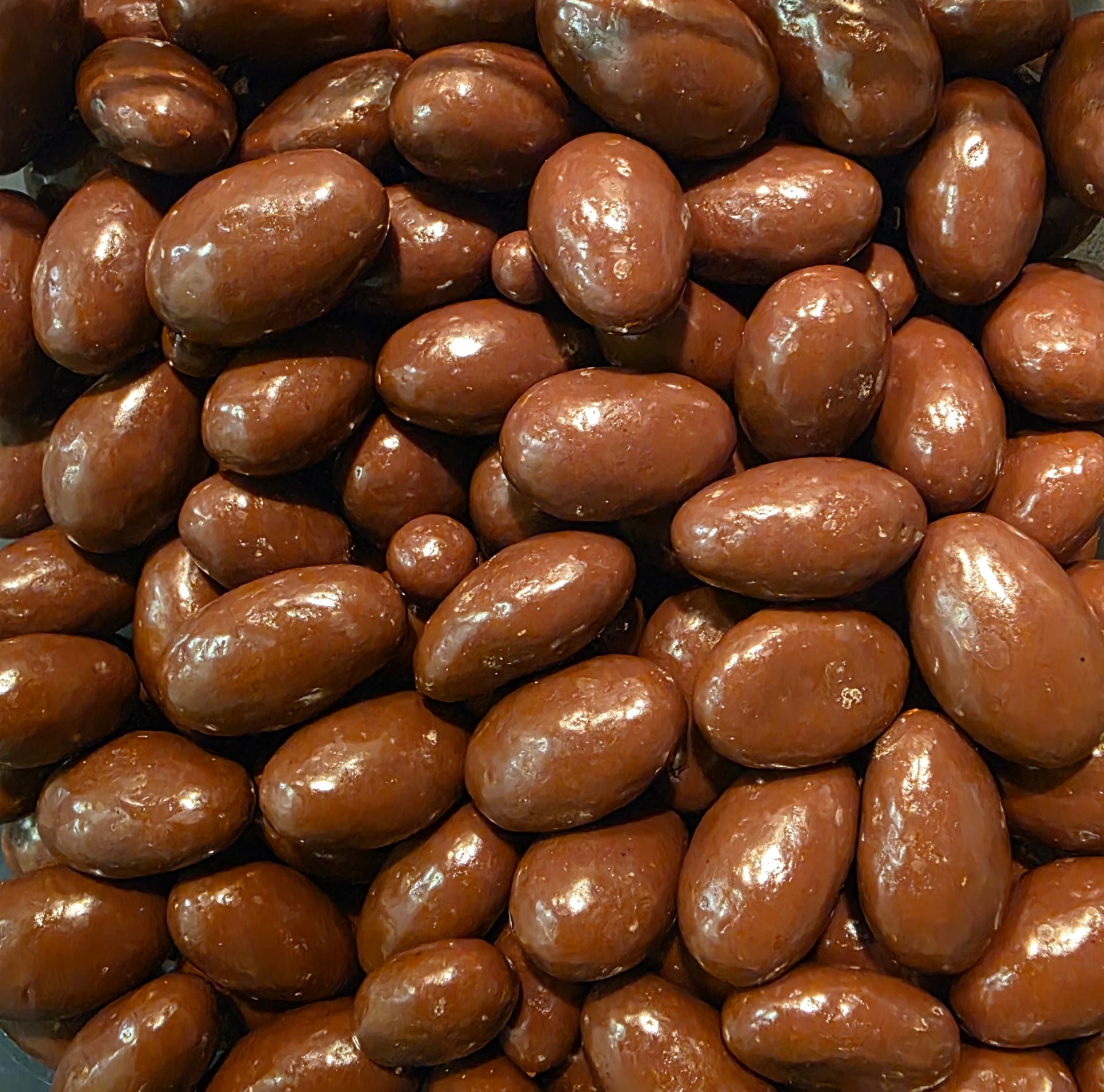 Délicieuses amandes enrobées de chocolat au lait.