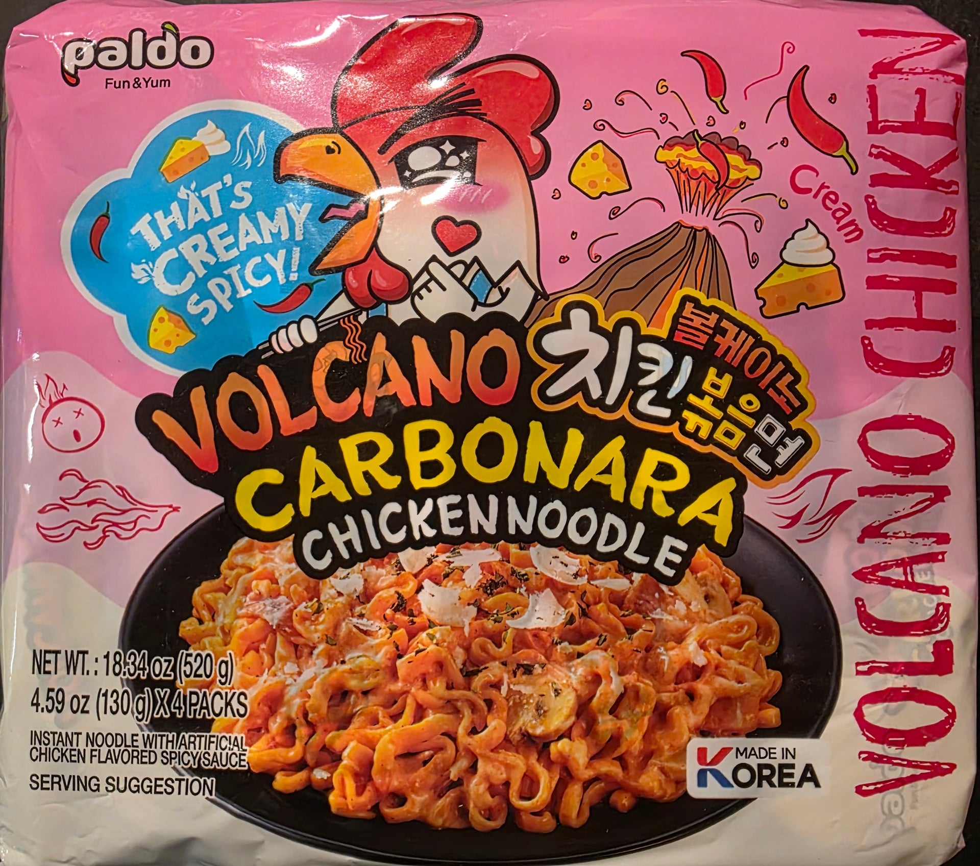 Paquet de 4 ramen Volcano a saveur poulet carbonara épicé